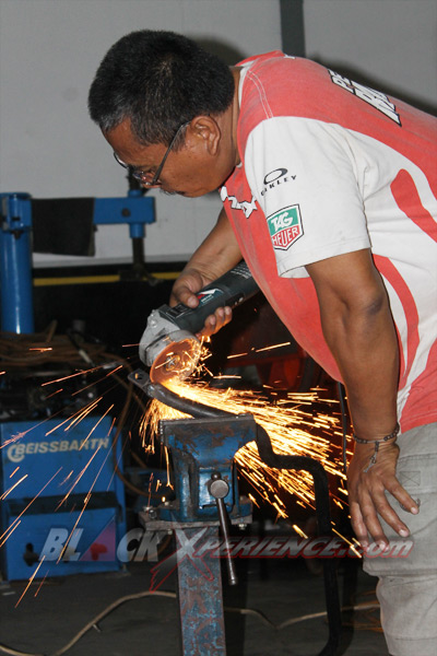 "Detail konsepuntuk airbrush pada tangkidanspakbormerupakan kombinasi efek batik di sisi kanan dan kiri tangki serta beberapa bagian spakbornya dengan warna emas", ujar Donny.