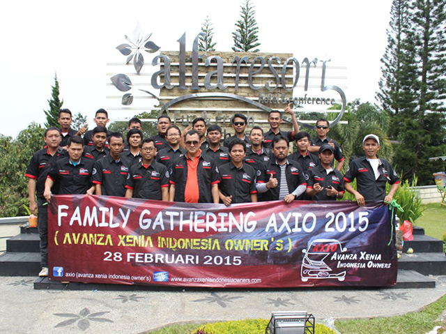 Komunitas Avanza Xenia Indonesia Owners (AXIO) menggelar family gathering yang bertajuk temu kangen keluarga besar AXIO. Acara kumpul-kumpul para member AXIO ini dilakukan di kawasan puncak, Bogor pada tanggal 28 Pebruari. Sebanyak tiga puluh member dari berbagai chapter ikut serta meramaikan acara tersebut.