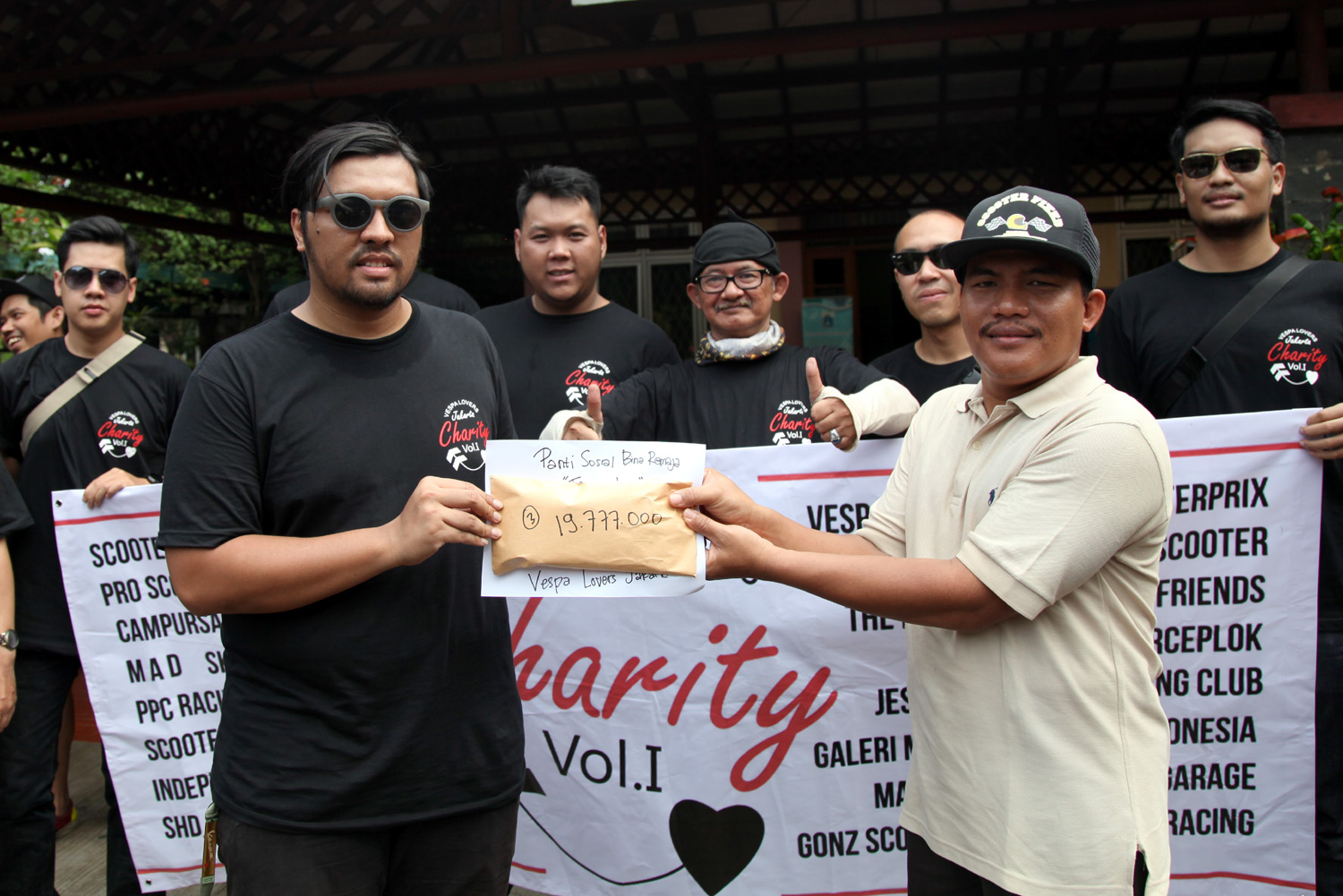 Sumbangan pertama diserahkan ke Panti Yatim Indonesia di Jalan Ciranjang No. 36, Kebayoran Baru. Setelah itu ratusan pengguna Vespa ini melanjutkan konvoi secara tertib ke Panti Sosial Bina Remaja Taruna Jaya dan Panti Sosial Asuhan Anak Putra Utama 3 yang berada di kawasan Tebet.