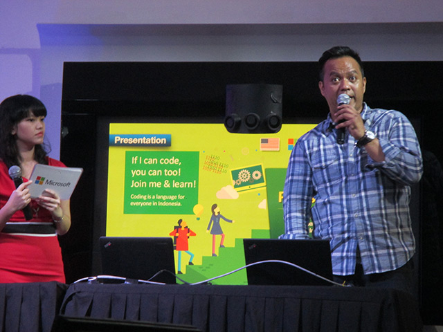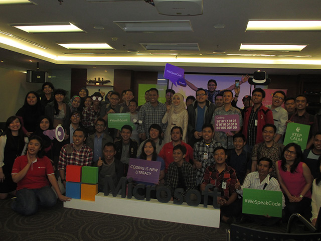 Bertempat di kantor Microsoft Indonesia, gedung Bursa Efek Indonesia, perusahaan raksasa IT itu mengumpulkan puluhan netizen atau orang-orang yang aktif di dunia maya seperti, blogger, instagramer, programer, mahasiswa dan pekerja kreatif untuk berbagi informasi menarik mengenai coding.