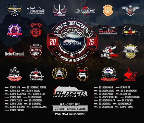1st Indonesia BlazerFest 2015 rencananya akan diadakan pada tanggal 19 Desember mendatang di Jawa Tengah dan dihadiri oleh lebih dari 400 anggota BIC dengan 400 mobil Blazer dan 100 mobil chevrolet. Pembukaan 1st Indonesia BlazerFest 2015 ini ditandai dengan pecah kendi oleh Ketum BIC dan Maria. [nus/timBX]