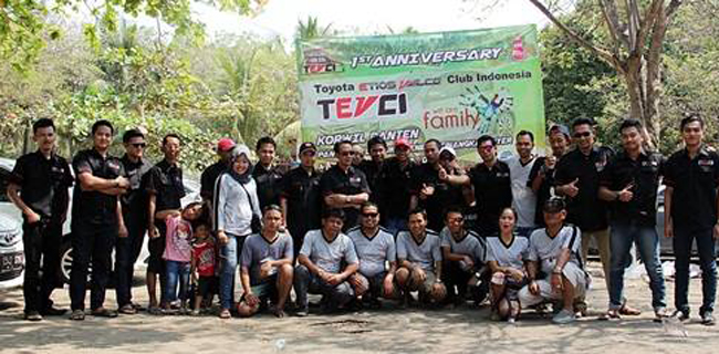 Komunitas pecinta mobil Toyota Etios Valco Club Indonesia (TEVCI) Korwil Banten menggelar tasyakuran hari jadi pertamanya di Batu Saung Teneng, Cinangka, Banten. Gelaran bertemakan "Fun for TEVCI's Family" tersebut diramaikan oleh seluruh anggota keluarga member TEVCI yang hadir.