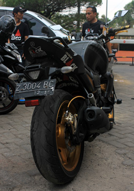 Pelek depan RGV ukuran 3,5 sedangkan untuk bagian belakang menggunakan pelek RGV berukuran 4